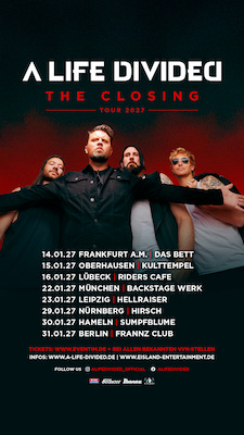 Du möchtest A Life Divided wieder auf der Live-Bühne hören? Dann sichere dir jetzt deine Tickets und erlebe alternative Rockmusik im Rahmen der "The Closing"-Tour 2026/2027 live.