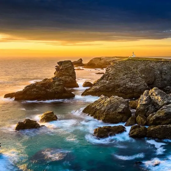 Zahllose Leuchttürme sprenkeln die Küste, endlose Sandstrände wandeln sich im Rhythmus des höchsten Tidenhubes Europas, Inseln wie Ouessant und Belle-Ile trotzen der Wucht der Winterstürme, Fischerdörfer ducken sich in tiefe Buchten und Städte wie Saint-Malo, Brest und Concarneau erzählen vom Leben des Menschen an und mit der See.