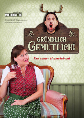 Weltkritik deluxe - das sind Bettina Prokert und Maxim Hofmann aus Leipzig.Das Duo ist seit 15 Jahren deutschlandweit, in Österreich und in der Schweiz unterwegs, hat bereits10 Kabarettpreise eingeheimst und die Presse schreibt: „Kurzweilig, urkomisch, lachtränentreibend.“