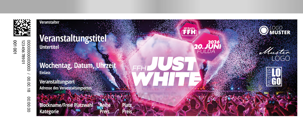 Erlebe am 20. Juni 2026, wie HIT RADIO FFH den Hessentag in Fulda in den angesagtesten Open Air Club Hessens verwandelt. Tauche ein in die besondere Welt von Just White und feiere mit internationalen Top Acts, atemberaubenden Special Effects und einem Meer aus Konfetti. Gemeinsam mit deinen Freunden erlebst du die Party des Jahres!