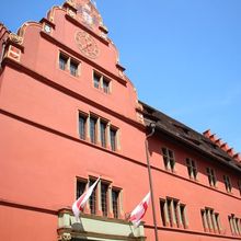 Highlights: Blick auf das historische Alte Rathaus Freiburgs, dessen Außenmauern noch aus dem Jahr 1559 stammen. Der Giebel ist traditionell bemalt, über der Uhr prangt der Doppeladler des Heiligen Römischen Reichs. Fun Fact: Das Alte Rathaus ist jünger als das Neue Rathaus