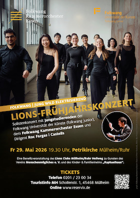 Überzeugen Sie sich 2025 und 2026 selbst von der unbändigen Spielfreude und Virtuosität des Orchesters. Erleben Sie die Konzerte des Folkwang Kammerorchesters Essen 2025/2026 live mit unseren Tickets!
