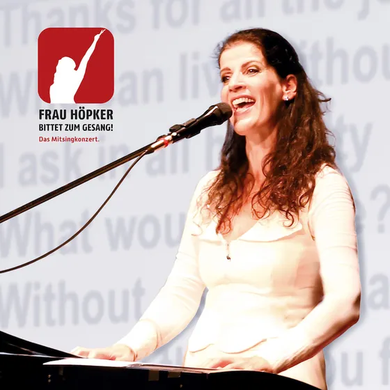 einem musikalischen Gesangserlebnis, das mehr ist als „nur“ gemeinsames Singen. Live am Klavier, ohne Netz und doppelten Boden bringt die charmante Künstlerin in kürzester Zeit einen großen Chor zusammen und singt sich mit ihm durch ein schier unerschöpfliches Repertoire. Ob Evergreens, Volkslieder, Schlager, beinahe vergessene Songs oder eines ihrer beliebten Medleys: Frau Höpkers Programm stimmt einfach.