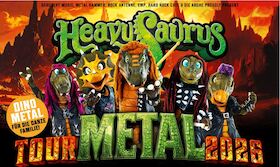 Im Januar 2026 erscheint mit METAL das neue Album der kinderfreundlichen Reptiloiden. Aber nicht nur das: Mit den neuen Songs geht es für die Kinderhelden auch gleich auf Tour. Wer Lust auf Dino-Power mit beinharten Metal hat, ist bei dieser Band garantiert richtig. Die Pommesgabel Tour 2025 hat bereits eindrucksvoll demonstriert, was die Metal-Dinos draufhaben. Wer bei den Konzerten dabei sein möchte, muss natürlich kein Paläontologe sein. Mit unseren Tickets seid ihr bei Heavysaurus Konzerten 2026/2027 live dabei!