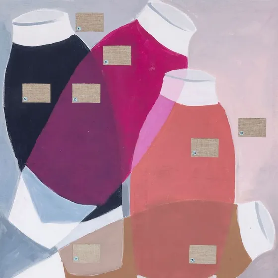Abb.: Keyvisual Hella Jongerius: Whispering Things © Vitra Design Museum Grafikdesign: Joost Grootens basierend auf dem Werk Falling Vases Paintings Hella Jongerius