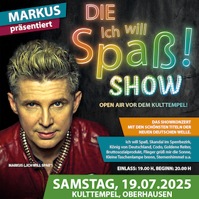 Keine andere Musikrichtung hat die 80er in Deutschland so geprägt wie die Neue Deutsche Welle. Und genau diese Zeit lässt Markus Mörl alias Markus mit seinen Kolleginnen und Kollegen wieder aufleben. Lasst euch von der Konzertrevue Ich will Spaß - Die 80er Show zurück in diese wunderbare Zeit versetzten und erlebt die Hits der NDW in überarbeiteter und auf Hochglanz polierter Version. So könnt ihr euch auf UKW-Peter Hubert, Geiersturzflug, Ryan Paris, so wie auf die Super Falco Show von Alexander Kerbst und natürlich Markus freuen. Auch einige Medleys mit den beliebtesten NDW-Hits wird es geben. Eingebettet in Geschichten und Highlights verspricht diese Hommage an die 80er eine Menge Spaß. Sichert euch jetzt Tickets und seid bei Markus präsentiert: Ich will Spaß - Die 80er Show 2025 live dabei!