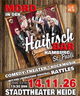 Haben sie Lust sich ins Jahr 1965 in Hamburg - St. Pauli mitnehmen zu lassen? Dort, wo bis vor kurzem das typische Wirtshausleben in der Haifischbar gelebt wurde. Doch seit dort der Zuhälter Danzinger erdrosselt wurde, hängt der Haussegen schief. Nun gilt es, der Frage nach dem Täter nachzugehen. Eingrenzen lässt sich das Tätermotiv nur auf die vermeintliche Freundin des Zuhälters, den Wirtshausbesitzer Hugo oder die Rosenverkäuferin, welche täglich in der Bar vorbeischaut. Sichern sie sich jetzt Tickets um beim Krimi-Comedydinner 2026/2027 gemeinsam mit Wachtmeister Lothar das Verbrechen aufzudecken!