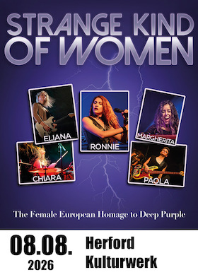 Die Rockband Deep Purple hat im Laufe ihrer musikalischen Karriere bereits Geschichte geschrieben. Die 1967 gegründete Band zählt mit über 130 Millionen verkauften Tonträgern zu den erfolgreichsten Rockbands überhaupt. Mit der Single Strange Kind of Woman, landete Deep Purple 1971 einen internationalen Erfolg, der auch in Deutschland Platz 8 der Charts erreichte. Benannt nach der Single begeben sich fünf Frauen aus Italien auf die Mission, das Gefühl, um die Band mit ihrem Sänger Ian Gillan wieder aufleben zu lassen. Du möchtest das erste weibliche Deep Purple Tribut ebenfalls erleben? Dann sichere dir jetzt deine Tickets und sei bei den Konzerten von Strange Kind of Women 2026 live dabei.