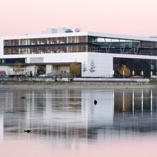 Im ruhigen Wasser des Seerheins spiegelt sich seit 2016 die gläserne Fassade des Bodenseeforums.