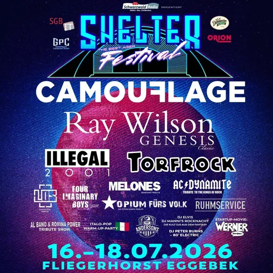 Mit „The Great Commandment“, „Love Is a Shield“ und „That Smiling Face“ schrieben sie Musikgeschichte – jetzt kommen sie live zum SHELTER Festival 2026: CAMOUFLAGE, die deutschen Synthie-Gottväter, sind Headliner des großen Festivalfreitags am 17. Juli 2026 in Eggebek!